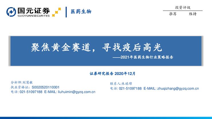 2021年医药生物行业策略报告:聚焦黄金赛道,寻找疫后高光-国元证券-202012.pdf