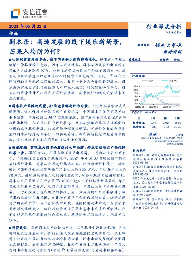 剧本杀:高速发展的线下娱乐新场景,芒果入局所为何?-安信证券-20210521.pdf