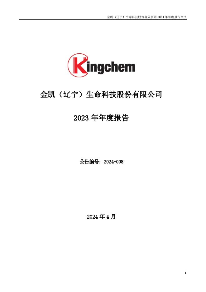 金凯(辽宁)生命科技股份有限公司2023年年度报告全文主要披露了公司2023年的财务报告、业务概况、公司治理、以及其他重要事项。